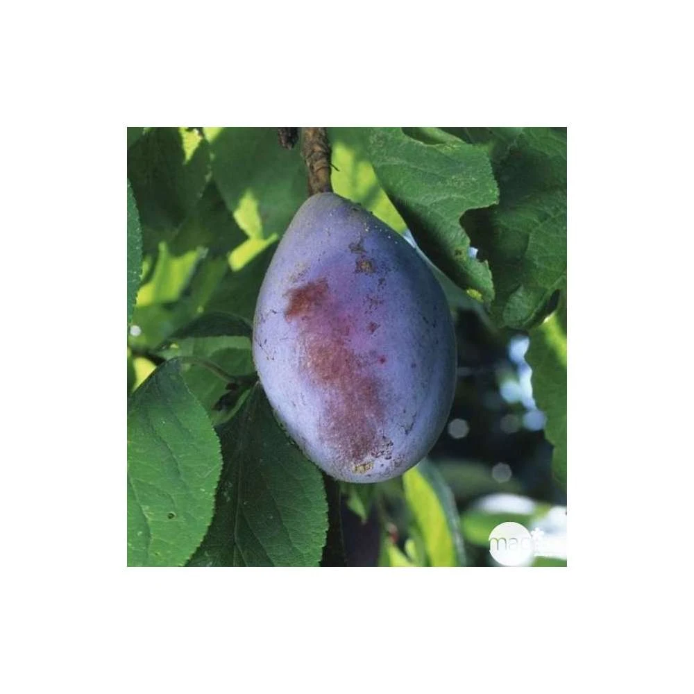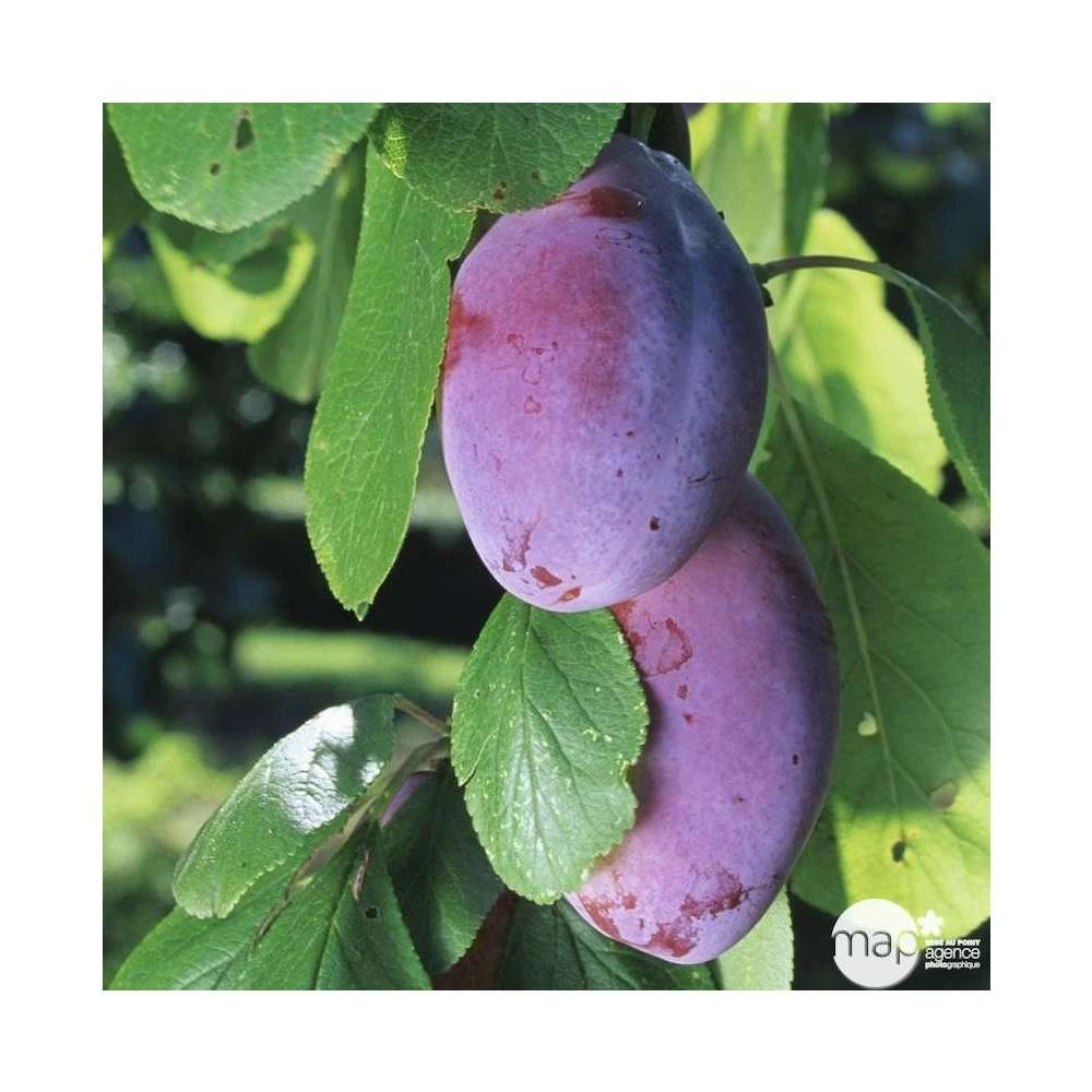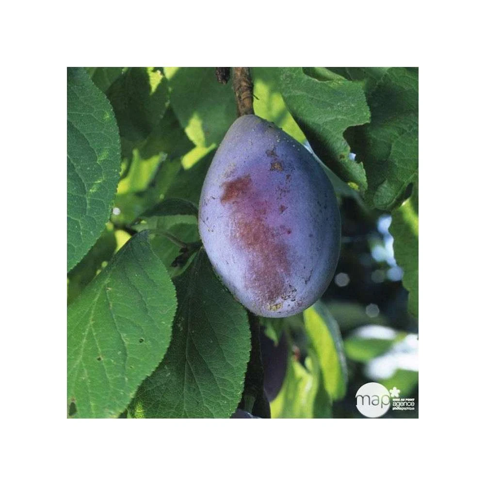 Arbre très vigoureux, voire difficile à contenir, à port mi-étalé. Il a une mise à fruits rapide, une fertilité importante et régulière. Cette variété est autofertile. La floraison est tardive vers la fin avril. C’est la raison pour laquelle cette variété réussit bien dans le Nord et l’Est de la France. La fructification a lieu début septembre. Les fruits ont la capacité de bien se conserver et ont une bonne aptitude au transport. De gros calibre, les prunes sont ovoïdes, avec une peau fine rouge pourpre violacé, recouverte d’une pruine blanchâtre. La chair est vert-jaunâtre, ferme, peu juteuse, peu sucrée et légèrement acidulée. Ce fruit se consomme plus en pruneau que frais.